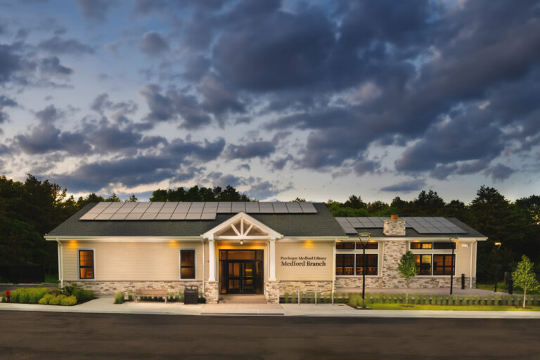 Trains: The library is located 1.1 miles north of the of the Medford Station of the Long Island Rail Road. See up-to-date schedules on the MTA’s website.